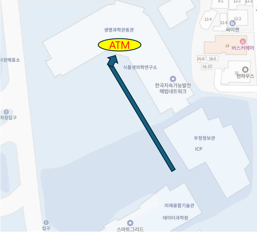 우정정보관 옆 건물인 생명과학관 동관 로비 ATM에서 현금 인출 가능.