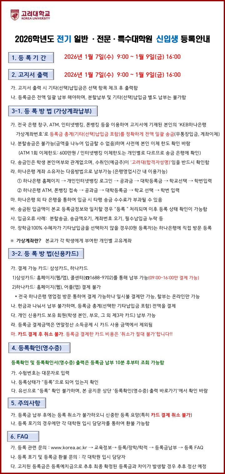2. 하단 안내문은 본교 홈페이지(www.korea.ac.kr) > 고대소식 > 공지사항 > 일반공지에서 출력 가능합니다.